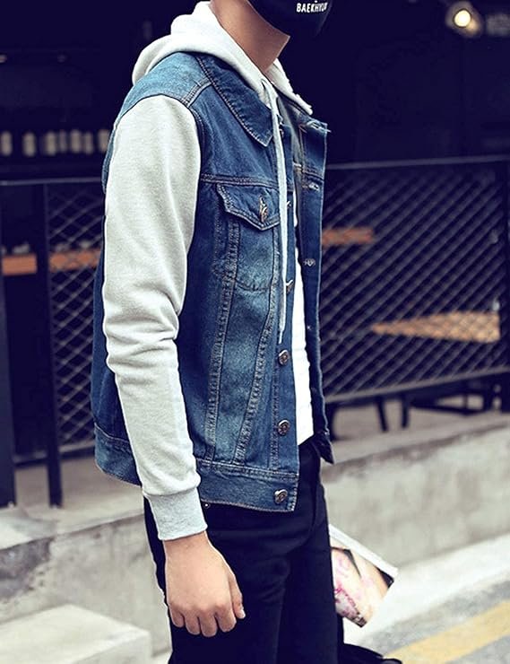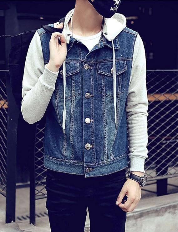 - Hooded jeans jacket mens, denim jacket men, men’s jean jacket hoodie, slim fit denim trucker jackets for men, jean jacket with hoodie men, fall clothes for men 2022